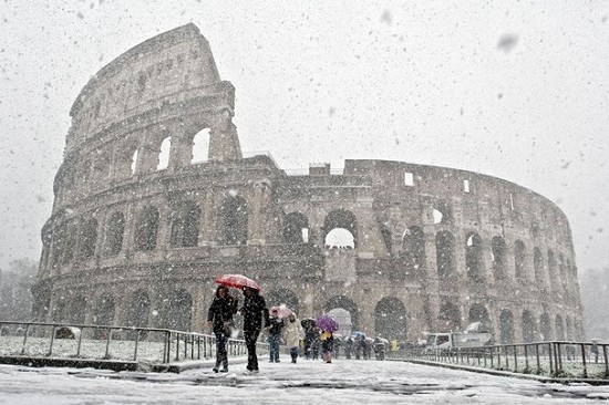 Na tento víkend, resp. 16-19. 1. lze očekávat dle předpovědí, že spadne nějaká ta sněhová vločka i v Římě, kde tedy obvykle nesněží. Ale asi tolik sněhu jako v zimě 2012 asi nenapadne.